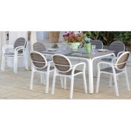 Набор пластиковой мебели, стол Alloro 140 и 8 кресел Palma, цвет bianco tortora