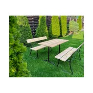 Технические зарактеристики: Комплект садовой мебели 2 скамьи Для двоих и стол Компакт. Комплект садовой мебели включает стол и две скамейки со спинками. Стол и скамейки выполнены из натурального дерева и прочного металла. Неокрашенное дерево дает возможность самостоятельной обработки воском, маслом, краской или морилкой для создания индивидуального дизайна. Прочный металлический каркас с порошковым покрытием обеспечивает устойчивость к коррозии и атмосферным воздействиям, гарантируя долговечность мебели. Комплект поставляется в разобранном виде для удобства транспортировки и хранения. Легкая сборка позволит быстро создать комфортное место для трапез и отдыха на свежем воздухе. Комплект идеально подходит для обустройства зоны отдыха на даче или в саду.