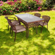 Технические зарактеристики: Комплект садовой мебели со столом Адлер длиной 1,4 метра и четырьмя стульями Латте с подушкой подходит для использования на открытых верандах и террасах. Мебель не выгорает на солнце, устойчива к любым видам осадков и перепадам температуры. Штабелируемые стулья. Не требует специального ухода.