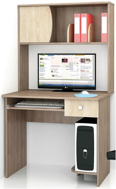 Технические характеристики: Стол оснащён надстройкой с полками, полкой под системный блок, одним выдвижным ящиком и выдвижной полкой для клавиатуры. Поставляется в разобранном виде.