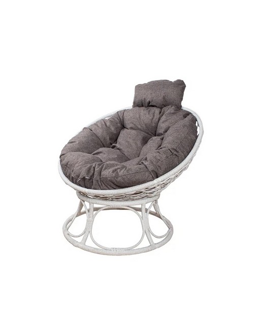Кресло Папасан Home Мини с ротангом (белое, подушка Пепел)