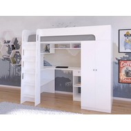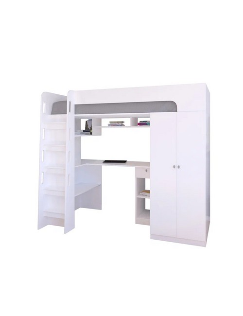 Технические характеристики: Кровать чердак Астра 10 (белый, белый). Умная конструкция кровати-чердака Астра 10 для детской комнаты, которая помогает организовать пространство с максимальной пользой. Вся нижняя зона превращена в многофункциональный блок: просторный шкаф и удобное рабочее место с компьютерным столом. Это удачная альтернатива двухъярусной кровати, где первый уровень полностью занят системой хранения и учебной зоной. Кровать на верхнем ярусе с защитными бортиками. Выдвижной ящик на роликовых направляющих. Максимальная нагрузка на спальное место - 100 кг. Кровать-чердак Астра 10 — это продуманное решение для небольших помещений, где важно совместить спальное место, систему хранения и уголок для учебы без потери комфорта.