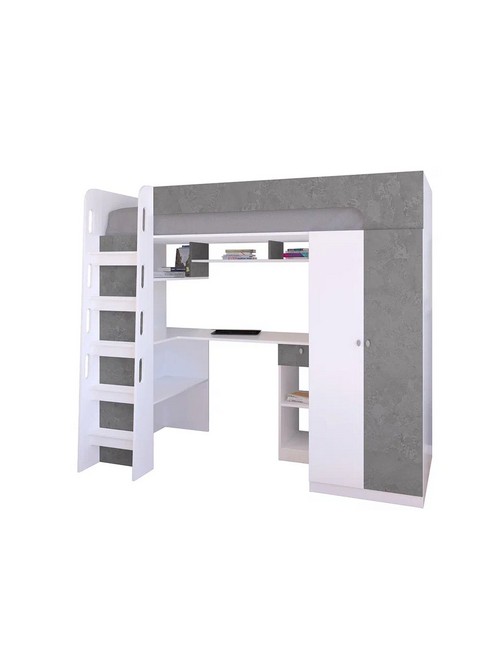 Технические характеристики: Кровать чердак Астра 10 (белый, железный камень). Умная конструкция кровати-чердака Астра 10 для детской комнаты, которая помогает организовать пространство с максимальной пользой. Вся нижняя зона превращена в многофункциональный блок: просторный шкаф и удобное рабочее место с компьютерным столом. Это удачная альтернатива двухъярусной кровати, где первый уровень полностью занят системой хранения и учебной зоной. Кровать на верхнем ярусе с защитными бортиками. Выдвижной ящик на роликовых направляющих. Максимальная нагрузка на спальное место - 100 кг. Кровать-чердак Астра 10 — это продуманное решение для небольших помещений, где важно совместить спальное место, систему хранения и уголок для учебы без потери комфорта.