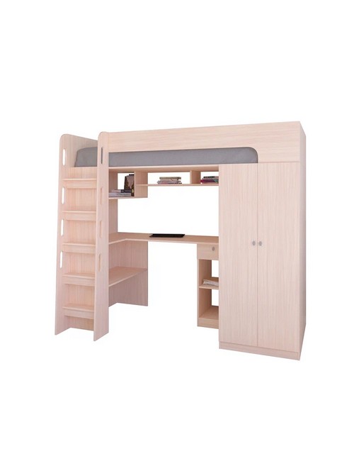 Технические характеристики: Кровать чердак Астра 10 (дуб молочный). Умная конструкция кровати-чердака Астра 10 для детской комнаты, которая помогает организовать пространство с максимальной пользой. Вся нижняя зона превращена в многофункциональный блок: просторный шкаф и удобное рабочее место с компьютерным столом. Это удачная альтернатива двухъярусной кровати, где первый уровень полностью занят системой хранения и учебной зоной. Кровать на верхнем ярусе с защитными бортиками. Выдвижной ящик на роликовых направляющих. Максимальная нагрузка на спальное место - 100 кг. Кровать-чердак Астра 10 — это продуманное решение для небольших помещений, где важно совместить спальное место, систему хранения и уголок для учебы без потери комфорта.