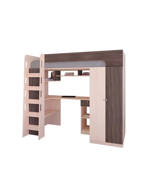 Технические характеристики: Кровать чердак Астра 10 (дуб молочный, дуб шамони). Умная конструкция кровати-чердака Астра 10 для детской комнаты, которая помогает организовать пространство с максимальной пользой. Вся нижняя зона превращена в многофункциональный блок: просторный шкаф и удобное рабочее место с компьютерным столом. Это удачная альтернатива двухъярусной кровати, где первый уровень полностью занят системой хранения и учебной зоной. Кровать на верхнем ярусе с защитными бортиками. Выдвижной ящик на роликовых направляющих. Максимальная нагрузка на спальное место - 100 кг. Кровать-чердак Астра 10 — это продуманное решение для небольших помещений, где важно совместить спальное место, систему хранения и уголок для учебы без потери комфорта.
