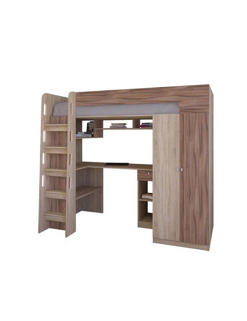 Технические характеристики: Кровать чердак Астра 10 (сонома, орех). Умная конструкция кровати-чердака Астра 10 для детской комнаты, которая помогает организовать пространство с максимальной пользой. Вся нижняя зона превращена в многофункциональный блок: просторный шкаф и удобное рабочее место с компьютерным столом. Это удачная альтернатива двухъярусной кровати, где первый уровень полностью занят системой хранения и учебной зоной. Кровать на верхнем ярусе с защитными бортиками. Выдвижной ящик на роликовых направляющих. Максимальная нагрузка на спальное место - 100 кг. Кровать-чердак Астра 10 — это продуманное решение для небольших помещений, где важно совместить спальное место, систему хранения и уголок для учебы без потери комфорта.