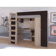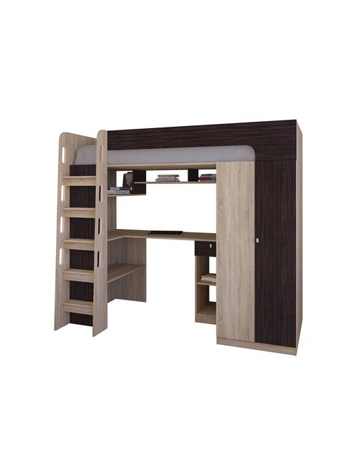 Технические характеристики: Кровать чердак Астра 10 (сонома, венге). Умная конструкция кровати-чердака Астра 10 для детской комнаты, которая помогает организовать пространство с максимальной пользой. Вся нижняя зона превращена в многофункциональный блок: просторный шкаф и удобное рабочее место с компьютерным столом. Это удачная альтернатива двухъярусной кровати, где первый уровень полностью занят системой хранения и учебной зоной. Кровать на верхнем ярусе с защитными бортиками. Выдвижной ящик на роликовых направляющих. Максимальная нагрузка на спальное место - 100 кг. Кровать-чердак Астра 10 — это продуманное решение для небольших помещений, где важно совместить спальное место, систему хранения и уголок для учебы без потери комфорта.