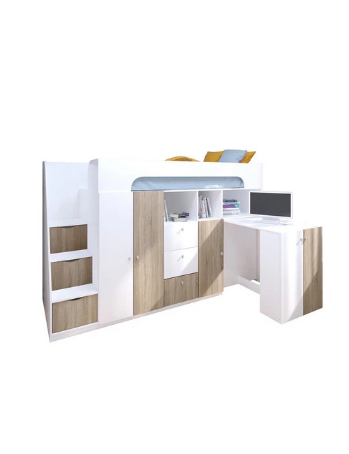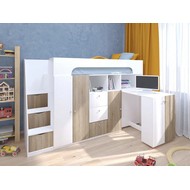Технические характеристики: Кровать чердак Астра 11 (белый, сонома). Умная конструкция кровати-чердака Астра 11 для детской комнаты, которая помогает организовать пространство с максимальной пользой. Спальное место расположено на удобной высоте, а под ним скрывается практичная рабочая зона со встроенными системами хранения. Кровать на верхнем ярусе с защитными бортиками, выдвижной письменный стол, который легко убирать при необходимости, удобная лестница-комод с ящиками разной глубины для дополнительного хранения. Выдвижной ящик на роликовых направляющих. Кровать-чердак Астра 11 — это продуманное решение для небольших помещений, где важно совместить спальное место, систему хранения и уголок для учебы без потери комфорта.
