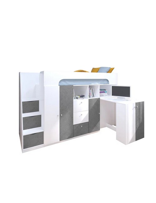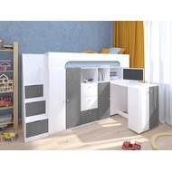 Технические характеристики: Кровать чердак Астра 11 (белый, железный камень). Умная конструкция кровати-чердака Астра 11 для детской комнаты, которая помогает организовать пространство с максимальной пользой. Спальное место расположено на удобной высоте, а под ним скрывается практичная рабочая зона со встроенными системами хранения. Кровать на верхнем ярусе с защитными бортиками, выдвижной письменный стол, который легко убирать при необходимости, удобная лестница-комод с ящиками разной глубины для дополнительного хранения. Выдвижной ящик на роликовых направляющих. Кровать-чердак Астра 11 — это продуманное решение для небольших помещений, где важно совместить спальное место, систему хранения и уголок для учебы без потери комфорта.