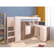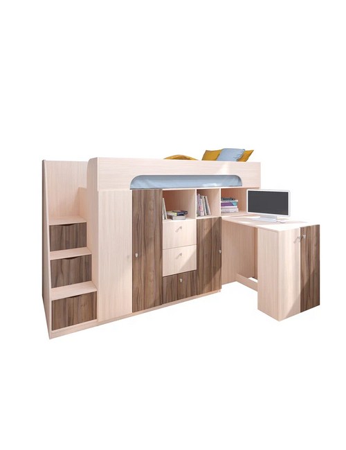 Технические характеристики: Кровать чердак Астра 11 (дуб молочный, орех). Умная конструкция кровати-чердака Астра 11 для детской комнаты, которая помогает организовать пространство с максимальной пользой. Спальное место расположено на удобной высоте, а под ним скрывается практичная рабочая зона со встроенными системами хранения. Кровать на верхнем ярусе с защитными бортиками, выдвижной письменный стол, который легко убирать при необходимости, удобная лестница-комод с ящиками разной глубины для дополнительного хранения. Выдвижной ящик на роликовых направляющих. Кровать-чердак Астра 11 — это продуманное решение для небольших помещений, где важно совместить спальное место, систему хранения и уголок для учебы без потери комфорта.