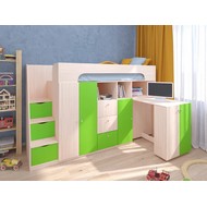 Технические характеристики: Кровать чердак Астра 11 (дуб молочный, салатовый). Умная конструкция кровати-чердака Астра 11 для детской комнаты, которая помогает организовать пространство с максимальной пользой. Спальное место расположено на удобной высоте, а под ним скрывается практичная рабочая зона со встроенными системами хранения. Кровать на верхнем ярусе с защитными бортиками, выдвижной письменный стол, который легко убирать при необходимости, удобная лестница-комод с ящиками разной глубины для дополнительного хранения. Выдвижной ящик на роликовых направляющих. Кровать-чердак Астра 11 — это продуманное решение для небольших помещений, где важно совместить спальное место, систему хранения и уголок для учебы без потери комфорта.