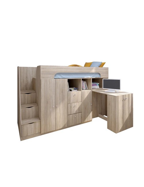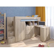 Технические характеристики: Кровать чердак Астра 11 (сонома). Умная конструкция кровати-чердака Астра 11 для детской комнаты, которая помогает организовать пространство с максимальной пользой. Спальное место расположено на удобной высоте, а под ним скрывается практичная рабочая зона со встроенными системами хранения. Кровать на верхнем ярусе с защитными бортиками, выдвижной письменный стол, который легко убирать при необходимости, удобная лестница-комод с ящиками разной глубины для дополнительного хранения. Выдвижной ящик на роликовых направляющих. Кровать-чердак Астра 11 — это продуманное решение для небольших помещений, где важно совместить спальное место, систему хранения и уголок для учебы без потери комфорта.