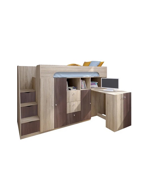 Технические характеристики: Кровать чердак Астра 11 (сонома, дуб шамони). Умная конструкция кровати-чердака Астра 11 для детской комнаты, которая помогает организовать пространство с максимальной пользой. Спальное место расположено на удобной высоте, а под ним скрывается практичная рабочая зона со встроенными системами хранения. Кровать на верхнем ярусе с защитными бортиками, выдвижной письменный стол, который легко убирать при необходимости, удобная лестница-комод с ящиками разной глубины для дополнительного хранения. Выдвижной ящик на роликовых направляющих. Кровать-чердак Астра 11 — это продуманное решение для небольших помещений, где важно совместить спальное место, систему хранения и уголок для учебы без потери комфорта.
