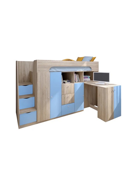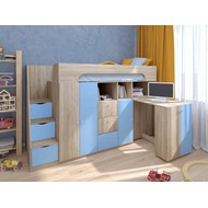 Технические характеристики: Кровать чердак Астра 11 (сонома, голубой). Умная конструкция кровати-чердака Астра 11 для детской комнаты, которая помогает организовать пространство с максимальной пользой. Спальное место расположено на удобной высоте, а под ним скрывается практичная рабочая зона со встроенными системами хранения. Кровать на верхнем ярусе с защитными бортиками, выдвижной письменный стол, который легко убирать при необходимости, удобная лестница-комод с ящиками разной глубины для дополнительного хранения. Выдвижной ящик на роликовых направляющих. Кровать-чердак Астра 11 — это продуманное решение для небольших помещений, где важно совместить спальное место, систему хранения и уголок для учебы без потери комфорта.