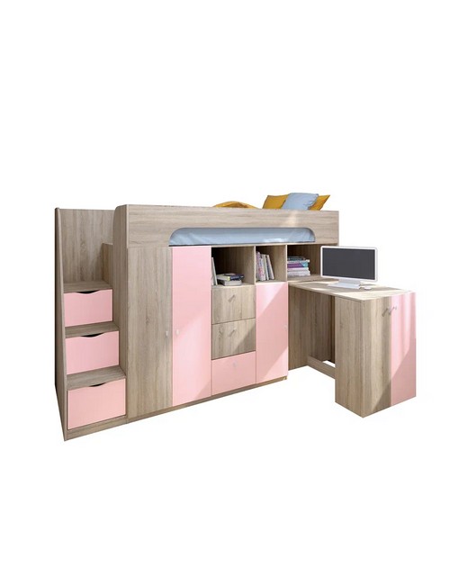 Технические характеристики: Кровать чердак Астра 11 (сонома, розовый). Умная конструкция кровати-чердака Астра 11 для детской комнаты, которая помогает организовать пространство с максимальной пользой. Спальное место расположено на удобной высоте, а под ним скрывается практичная рабочая зона со встроенными системами хранения. Кровать на верхнем ярусе с защитными бортиками, выдвижной письменный стол, который легко убирать при необходимости, удобная лестница-комод с ящиками разной глубины для дополнительного хранения. Выдвижной ящик на роликовых направляющих. Кровать-чердак Астра 11 — это продуманное решение для небольших помещений, где важно совместить спальное место, систему хранения и уголок для учебы без потери комфорта.