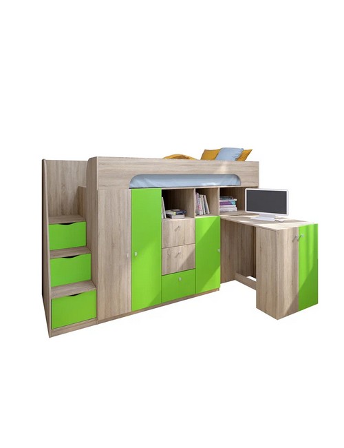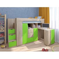 Технические характеристики: Кровать чердак Астра 11 (сонома, салатовый). Умная конструкция кровати-чердака Астра 11 для детской комнаты, которая помогает организовать пространство с максимальной пользой. Спальное место расположено на удобной высоте, а под ним скрывается практичная рабочая зона со встроенными системами хранения. Кровать на верхнем ярусе с защитными бортиками, выдвижной письменный стол, который легко убирать при необходимости, удобная лестница-комод с ящиками разной глубины для дополнительного хранения. Выдвижной ящик на роликовых направляющих. Кровать-чердак Астра 11 — это продуманное решение для небольших помещений, где важно совместить спальное место, систему хранения и уголок для учебы без потери комфорта.