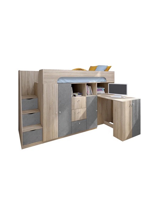 Технические характеристики: Кровать чердак Астра 11 (сонома, железный камень). Умная конструкция кровати-чердака Астра 11 для детской комнаты, которая помогает организовать пространство с максимальной пользой. Спальное место расположено на удобной высоте, а под ним скрывается практичная рабочая зона со встроенными системами хранения. Кровать на верхнем ярусе с защитными бортиками, выдвижной письменный стол, который легко убирать при необходимости, удобная лестница-комод с ящиками разной глубины для дополнительного хранения. Выдвижной ящик на роликовых направляющих. Кровать-чердак Астра 11 — это продуманное решение для небольших помещений, где важно совместить спальное место, систему хранения и уголок для учебы без потери комфорта.