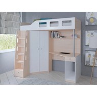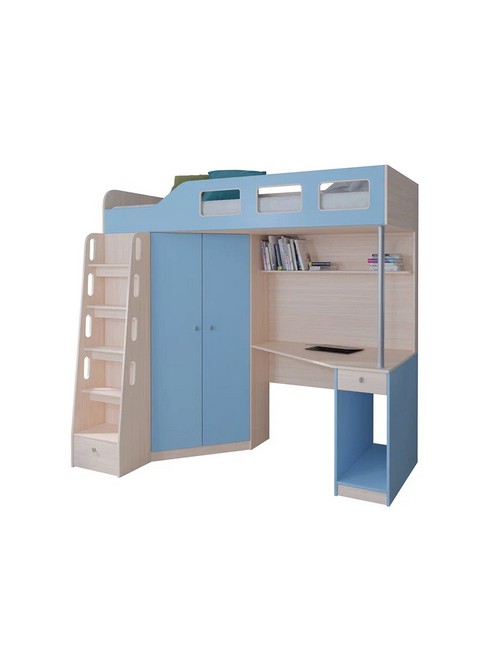 Технические характеристики: Кровать чердак Астра 7 (дуб молочный, голубой). Современная кровать чердак Астра 7 для школьников, объединяющая комфортную спальную зону и полноценное рабочее место. Модель отличается эргономичной конструкцией, которая сохраняет площадь комнаты, предоставляя ребенку все необходимое для отдыха, учебы и хранения вещей. Просторное спальное место с защитными бортиками. Вместительный двустворчатый шкаф в левой части конструкции. Функциональная рабочая зона с широкой столешницей и полкой. Металлическая опорная штанга для повышенной устойчивости и удобная металлическая лестница с надежными ступенями. Направляющие ящиков - роликовые. Максимальная нагрузка на спальное место - 100 кг. Кровать чердак Астра 7 - идеальное решение для современных детских комнат, где важно совместить комфорт, практичность и эстетику. Варианты цвета фасадов: дуб молочный, дуб шамони, орех, оранжевый, голубой, салатовый, розовый, железный камень, белый, сонома, эвок прибрежный. Для уточнения деталей рекомендуем проконсультироваться с нашими специалистами.