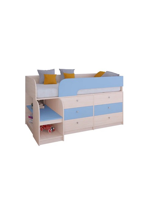 Технические характеристики: Кровать чердак Астра 9 V3 (дуб молочный, голубой). Игровая и функциональная кровать чердак Астра 9 V3, создающая идеальное пространство для ребенка. Сочетает безопасность, оригинальный дизайн и продуманную организацию места для сна, игр и хранения. Все кромки обработаны, отсутствуют острые углы, установлен защитный бортик. Удобные полки для книг и игрушек. Направляющие ящика - роликовые. Максимальная нагрузка на спальное место - 100 кг. Кровать чердак Астра 9 V3 - идеальное решение для детской комнаты, где важны безопасность, комфорт и рациональное использование пространства. Варианты цвета фасадов: дуб шамони, орех, оранжевый, голубой, салатовый, розовый, дуб молочный, венге. Для уточнения деталей рекомендуем проконсультироваться с нашими специалистами.