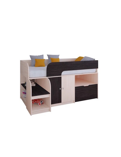 Технические характеристики: Кровать чердак Астра 9 V4 (дуб молочный, венге). Игровая и функциональная кровать чердак Астра 9 V4, создающая идеальное пространство для ребенка. Сочетает безопасность, оригинальный дизайн и продуманную организацию места для сна, игр и хранения. Все кромки обработаны, отсутствуют острые углы, установлен защитный бортик. Удобные полки для книг и игрушек. Направляющие ящика - роликовые. Максимальная нагрузка на спальное место - 100 кг. Кровать чердак Астра 9 V4 - идеальное решение для детской комнаты, где важны безопасность, комфорт и рациональное использование пространства. Варианты цвета фасадов: дуб шамони, орех, оранжевый, голубой, салатовый, розовый, дуб молочный, венге. Для уточнения деталей рекомендуем проконсультироваться с нашими специалистами.