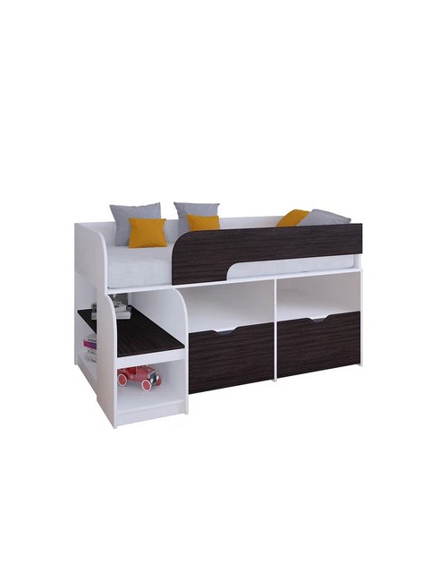 Технические характеристики: Кровать чердак Астра 9 V6 (белый, венге). Игровая и функциональная кровать чердак Астра 9 V6, создающая идеальное пространство для ребенка. Сочетает безопасность, оригинальный дизайн и продуманную организацию места для сна, игр и хранения. Все кромки обработаны, отсутствуют острые углы, установлен защитный бортик. Удобные полки для книг и игрушек. Направляющие ящика - роликовые. Максимальная нагрузка на спальное место - 100 кг. Кровать чердак Астра 9 V6 - идеальное решение для детской комнаты, где важны безопасность, комфорт и рациональное использование пространства. Варианты цвета фасадов: дуб шамони, орех, оранжевый, голубой, салатовый, розовый, белый, венге. Для уточнения деталей рекомендуем проконсультироваться с нашими специалистами.