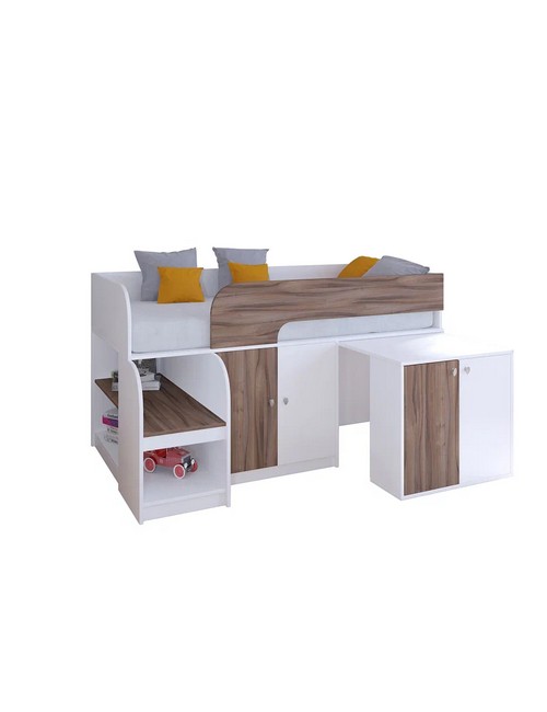 Технические характеристики: Кровать чердак Астра 9 V8 (белый, орех). Игровая и функциональная кровать чердак Астра 9 V8, создающая идеальное пространство для ребенка. Сочетает безопасность, оригинальный дизайн и продуманную организацию места для сна, игр и хранения. Все кромки обработаны, отсутствуют острые углы, установлен защитный бортик. Удобные полки для книг и игрушек. Направляющие ящика - роликовые. Максимальная нагрузка на спальное место - 100 кг. Кровать чердак Астра 9 V8 - идеальное решение для детской комнаты, где важны безопасность, комфорт и рациональное использование пространства. Варианты цвета фасадов: дуб шамони, орех, оранжевый, голубой, салатовый, розовый, белый, венге. Для уточнения деталей рекомендуем проконсультироваться с нашими специалистами.