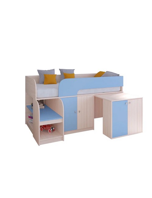 Технические характеристики: Кровать чердак Астра 9 V8 (дуб молочный, голубой). Игровая и функциональная кровать чердак Астра 9 V8, создающая идеальное пространство для ребенка. Сочетает безопасность, оригинальный дизайн и продуманную организацию места для сна, игр и хранения. Все кромки обработаны, отсутствуют острые углы, установлен защитный бортик. Удобные полки для книг и игрушек. Направляющие ящика - роликовые. Максимальная нагрузка на спальное место - 100 кг. Кровать чердак Астра 9 V8 - идеальное решение для детской комнаты, где важны безопасность, комфорт и рациональное использование пространства. Варианты цвета фасадов: дуб шамони, орех, оранжевый, голубой, салатовый, розовый, дуб молочный, венге. Для уточнения деталей рекомендуем проконсультироваться с нашими специалистами.