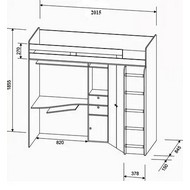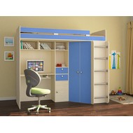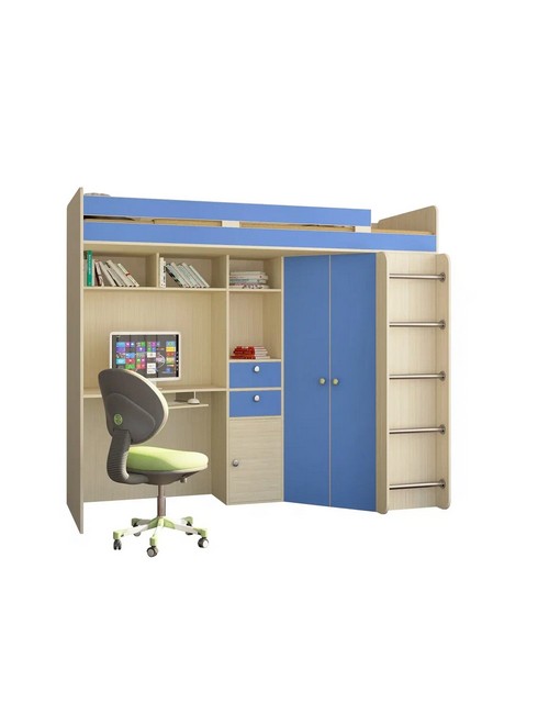 Технические характеристики: Кровать чердак Астра (дуб молочный, голубой). Умная конструкция кровати-чердака Астра для детской комнаты, которая помогает организовать пространство с максимальной пользой. Вся нижняя зона превращена в многофункциональный блок: с одной стороны — просторный угловой шкаф, с другой — удобное рабочее место с компьютерным столом. Это удачная альтернатива двухъярусной кровати, где первый уровень полностью занят системой хранения и учебной зоной. Кровать на верхнем ярусе с защитными бортиками. Два выдвижных ящика на роликовых направляющих. Максимальная нагрузка на спальное место - 100 кг. Кровать-чердак Астра — это продуманное решение для небольших помещений, где важно совместить спальное место, систему хранения и уголок для учебы без потери комфорта.