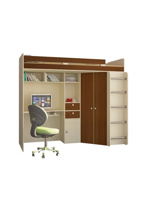Технические характеристики: Кровать чердак Астра (дуб молочный, орех). Умная конструкция кровати-чердака Астра для детской комнаты, которая помогает организовать пространство с максимальной пользой. Вся нижняя зона превращена в многофункциональный блок: с одной стороны — просторный угловой шкаф, с другой — удобное рабочее место с компьютерным столом. Это удачная альтернатива двухъярусной кровати, где первый уровень полностью занят системой хранения и учебной зоной. Кровать на верхнем ярусе с защитными бортиками. Два выдвижных ящика на роликовых направляющих. Максимальная нагрузка на спальное место - 100 кг. Кровать-чердак Астра — это продуманное решение для небольших помещений, где важно совместить спальное место, систему хранения и уголок для учебы без потери комфорта.