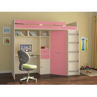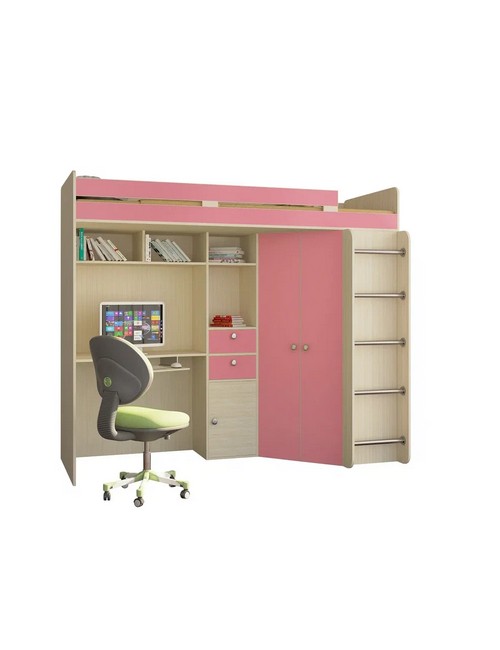 Технические характеристики: Кровать чердак Астра (дуб молочный, розовый). Умная конструкция кровати-чердака Астра для детской комнаты, которая помогает организовать пространство с максимальной пользой. Вся нижняя зона превращена в многофункциональный блок: с одной стороны — просторный угловой шкаф, с другой — удобное рабочее место с компьютерным столом. Это удачная альтернатива двухъярусной кровати, где первый уровень полностью занят системой хранения и учебной зоной. Кровать на верхнем ярусе с защитными бортиками. Два выдвижных ящика на роликовых направляющих. Максимальная нагрузка на спальное место - 100 кг. Кровать-чердак Астра — это продуманное решение для небольших помещений, где важно совместить спальное место, систему хранения и уголок для учебы без потери комфорта.
