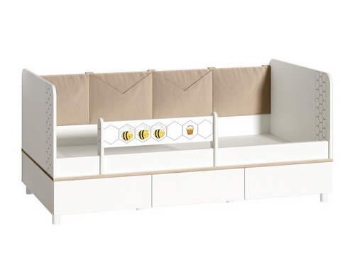 Особенности: Детская кровать Эйп 11.40 выполнена в актуальном цвете белый шагрень и декорирована оригинальным рисунком и кромкой в цвете дуб. Кровать оснащена тремя выдвижными ящиками на шариковых направляющих полного выдвижения. Корпус кровати изготовлен из ЛДСП, который отличается высокой износостойкостью и устойчивостью к механическим повреждениям. Кровать оснащена прочным основанием из настила. Максимальная нагрузка на спальное место 80 кг, на ящик - 3 кг. Высота спального места от пола - 26 см. Рекомендуемая высота матраса 12 см. Регулируемые опоры высотой 6 см позволяют легко компенсировать неровности пола. Передвижной ограничительный бортик обеспечивает безопасность малыша во время сна. Съемный мягкий элемент с карманами из износостойкой ткани Ультра Сэнд обеспечит удобное хранение игрушек и книг. Матрас и другие аксессуары приобретаются отдельно. Можно компоновать с другими модулями из серии мебели Эйп. Реальный цвет товара может отличаться от цвета товара на фотографии. Поставляется в разобранном виде.
