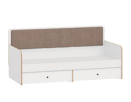 Особенности: Детская кровать Вуди 11.02 выполнена в белом цвете с контрастной кромкой дуб золотой. Кровать оснащена двумя выдвижными ящиками на колесных опорах с черными ручками-кнопками. Спинка кровати обтянута приятной на ощупь тканью Savana Latte с карманами. Каркас и основание изготовлены из ЛДСП, который отличается высокой износостойкостью и устойчивостью к механическим повреждениям. Рекомендуемая высота матраса 10-20 см. Матрас в комплект не входит, приобретается отдельно. Можно компоновать с другими модулями из серии мебели Вуди. Реальный цвет товара может отличаться от цвета товара на фотографии. Поставляется в разобранном виде.