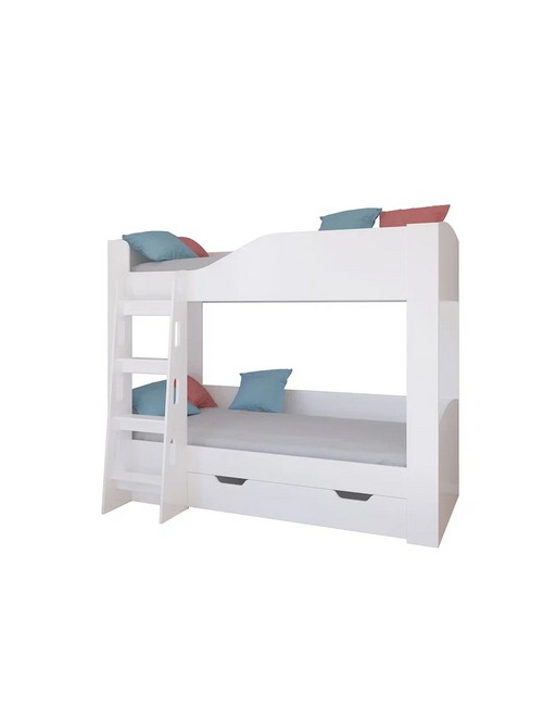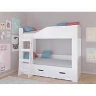 Технические характеристики: Кровать двухъярусная Астра 2 с ящиком (белый, белый). Детская двухъярусная кровать Астра 2 - это функциональное решение для комнаты двух детей, где важна экономия пространства без ущерба для комфорта. Модель сочетает безопасность, продуманную организацию пространства и современный дизайн. Два полноценных спальных места с усиленными бортиками на верхнем ярусе. Удобная стационарная лестница для безопасного подъема. Возможность использования нижнего яруса как дивана в дневное время. Усиленные широкие стойки для максимальной устойчивости. Вместительный выкатной ящик для хранения постельных принадлежностей. Максимальная нагрузка на место - 100 кг. Кровать двухъярусная Астра 2 с ящиком - идеальный выбор для практичных родителей, ценящих безопасность, комфорт и рациональное использование пространства в детской комнат.