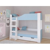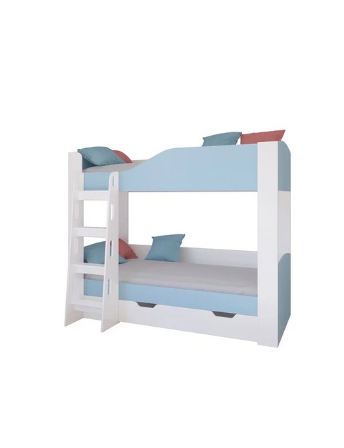 Кровать двухъярусная Астра 2 с ящиком (белый, голубой)