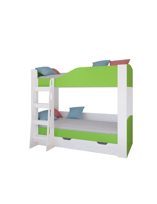 Кровать двухъярусная Астра 2 с ящиком (белый, салатовый)