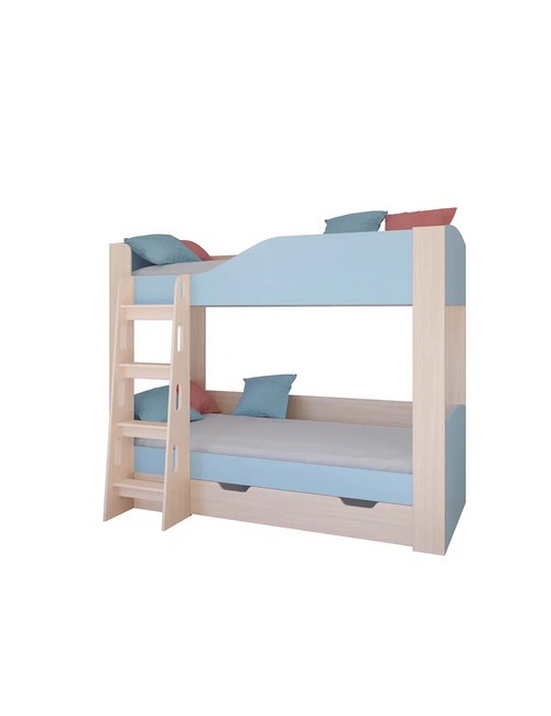 Кровать двухъярусная Астра 2 с ящиком (дуб молочный, голубой)