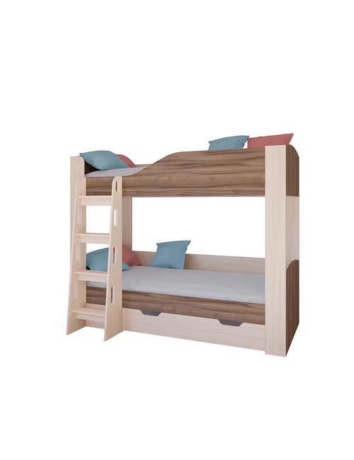 Кровать двухъярусная Астра 2 с ящиком (дуб молочный, орех)