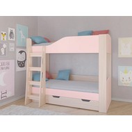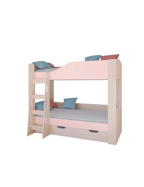 Кровать двухъярусная Астра 2 с ящиком (дуб молочный, розовый)