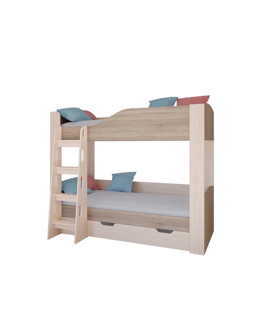 Кровать двухъярусная Астра 2 с ящиком (дуб молочный, сонома)