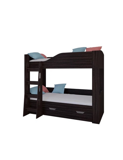 Технические характеристики: Кровать двухъярусная Астра 2 с ящиком (венге). Детская двухъярусная кровать Астра 2 - это функциональное решение для комнаты двух детей, где важна экономия пространства без ущерба для комфорта. Модель сочетает безопасность, продуманную организацию пространства и современный дизайн. Два полноценных спальных места с усиленными бортиками на верхнем ярусе. Удобная стационарная лестница для безопасного подъема. Возможность использования нижнего яруса как дивана в дневное время. Усиленные широкие стойки для максимальной устойчивости. Вместительный выкатной ящик для хранения постельных принадлежностей. Максимальная нагрузка на место - 100 кг. Кровать двухъярусная Астра 2 с ящиком - идеальный выбор для практичных родителей, ценящих безопасность, комфорт и рациональное использование пространства в детской комнате.