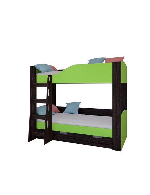 Кровать двухъярусная Астра 2 с ящиком (венге, салатовый)
