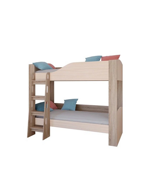 Технические характеристики: Кровать двухъярусная Астра 2 (сонома, дуб молочный). Детская двухъярусная кровать Астра 2 - это функциональное решение для комнаты двух детей, где важна экономия пространства без ущерба для комфорта. Модель сочетает безопасность, продуманную организацию пространства и современный дизайн. Два полноценных спальных места с усиленными бортиками на верхнем ярусе. Удобная стационарная лестница для безопасного подъема. Возможность использования нижнего яруса как дивана в дневное время. Усиленные широкие стойки для максимальной устойчивости. Максимальная нагрузка на место - 100 кг. Кровать двухъярусная Астра 2 - идеальный выбор для практичных родителей, ценящих безопасность, комфорт и рациональное использование пространства в детской комнате.