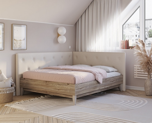 Кровать двуспальная Скандика 160х200 с мягким изголовьем и боковиной (дуб смоки, кашемир)