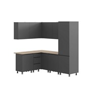 Особенности: Корпус ЛДСП, графит серый. Фасад ЛДСП, графит серый. Скрытая фурнитура. Направляющие ящиков: Роликовые. Опоры пластиковые регулируемые, 10 см. Столешница в комплект не входит.