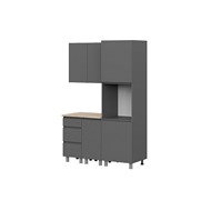 Особенности: Корпус ЛДСП, графит серый. Фасад ЛДСП, графит серый. Скрытая фурнитура. Направляющие ящиков: Роликовые. Опоры пластиковые регулируемые, 10 см. Столешница в комплект не входит.