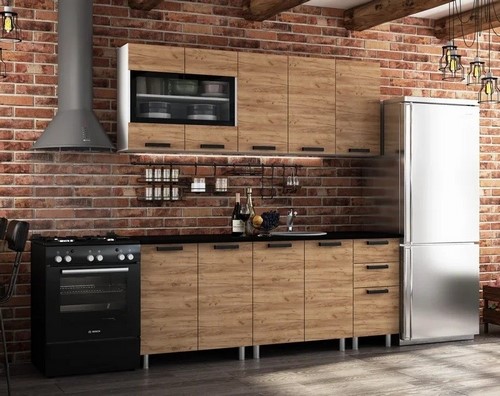 Дополнительно: Кухня Крафт 2 м - готовое модульное решение для кухни. Верхние стеклостворки фасадов украшены прозрачным стеклом в черной декоративной рамке, нанесенной при помощи фотопечати. В комплекте столешница черный мрамор толщиной 38 мм.
