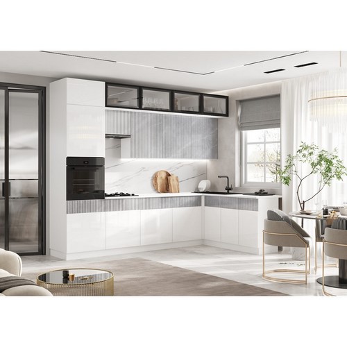 Кухня Оливия NEW 3,0х1,8м (белый глянец холодный, мрамор глянец, белый)