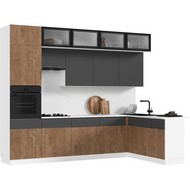 Кухня Оливия NEW 3,0х1,8м (экзотическое дерево амазония, графит софт NEW)