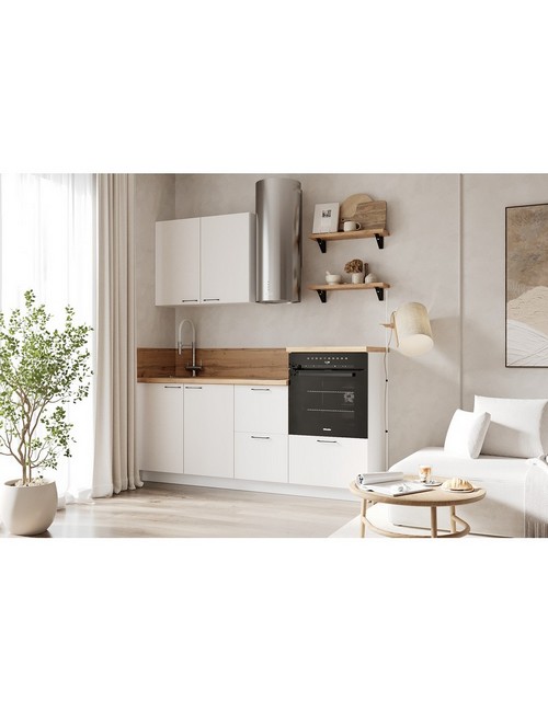 Технические характеристики: Кухонный гарнитур 1950 вариант 5 Лизет (белый софт матовый). Роскошный кухонный гарнитур с безупречными линиями и гармоничными пропорциями. Благородная палитра оттенков, выразительная текстура дерева и сдержанная эстетика, создающая атмосферу уюта и порядка. Направляющие Firmax с повышенным запасом прочности - свыше 60 000 циклов. Усиленные механизмы, выдерживающие нагрузку более 30 кг. Бесшумная и плавная работа всех движущихся элементов. Встроенная система Push to Open для скрытых ящиков, усиленное дно внутренних модулей для повышенной надежности. Высокий модуль под духовой шкаф для современного зонирования и регулируемые опоры для идеальной устойчивости. Цельная столешница без видимых стыков для простоты ухода, сменные металлические ручки, не требующие пересверливания. В кухонном гарнитуре 1950 вариант 5 коллекции Лизет каждая деталь, от премиальной фурнитуры до бесшовных поверхностей, создает кухню, которая станет не только функциональным пространством, но и источником вдохновения для всей семьи.