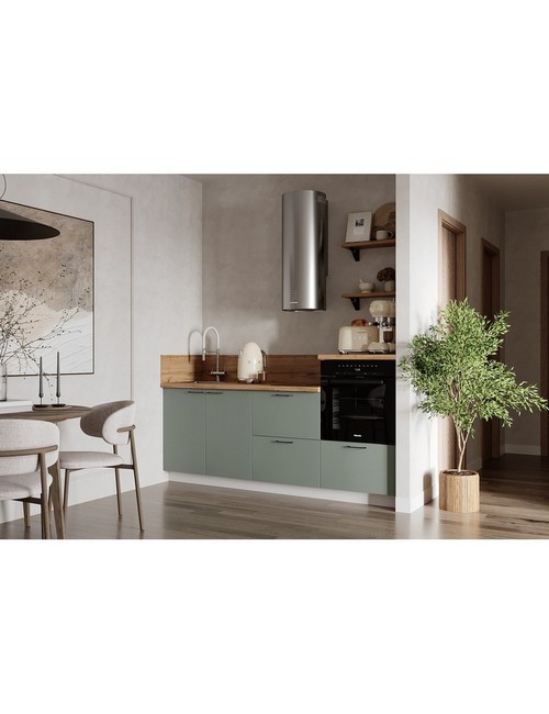 Технические характеристики: Кухонный гарнитур 2100 Олива эмаль вариант 6. Роскошный кухонный гарнитур с безупречными линиями и гармоничными пропорциями. Благородная палитра оттенков, выразительная текстура дерева и сдержанная эстетика, создающая атмосферу уюта и порядка. Направляющие Firmax с повышенным запасом прочности - свыше 60 000 циклов. Усиленные механизмы, выдерживающие нагрузку более 30 кг. Бесшумная и плавная работа всех движущихся элементов. Встроенная система Push to Open для скрытых ящиков, усиленное дно внутренних модулей для повышенной надежности. Высокий модуль под духовой шкаф для современного зонирования и регулируемые опоры для идеальной устойчивости. Цельная столешница без видимых стыков для простоты ухода, сменные металлические ручки, не требующие пересверливания. В кухонном гарнитуре 2100 Олива эмаль вариант 6 коллекции Лизет каждая деталь, от премиальной фурнитуры до бесшовных поверхностей, создает кухню, которая станет не только функциональным пространством, но и источником вдохновения для всей семьи.